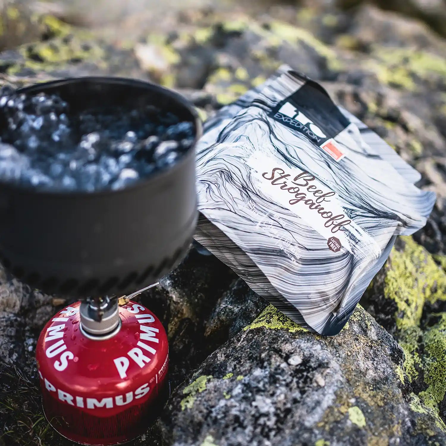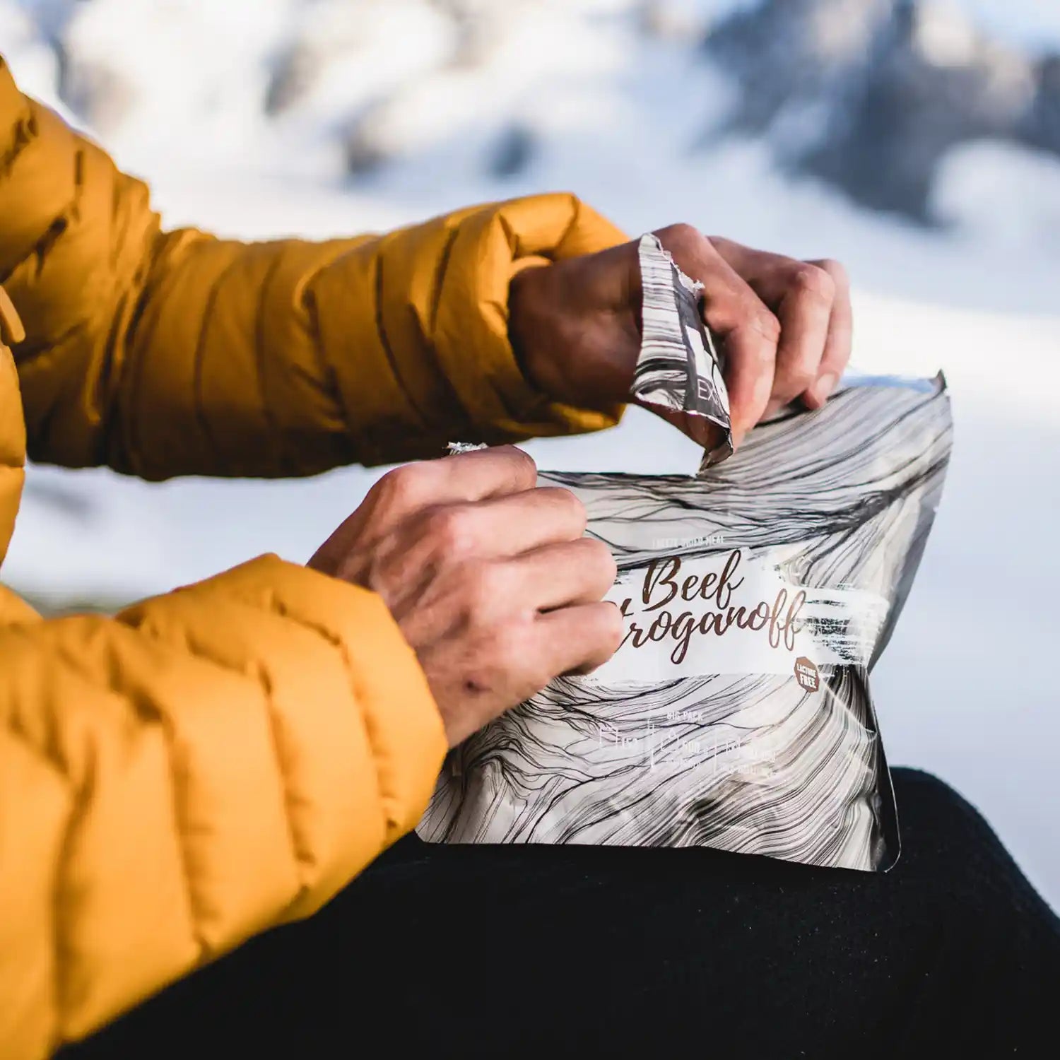 Straight from mid 19th-century Tsarist Russia to wherever the trail leads you. Tender beef pieces simmered with onions, mushrooms and pickled cucumber, seasoned with mustard and a variety of spices. Served with penne pasta. We went to great lengths to recreate this time-honored classic recipe without compromising its original flavor so that you can enjoy it even when you’re out in nature.