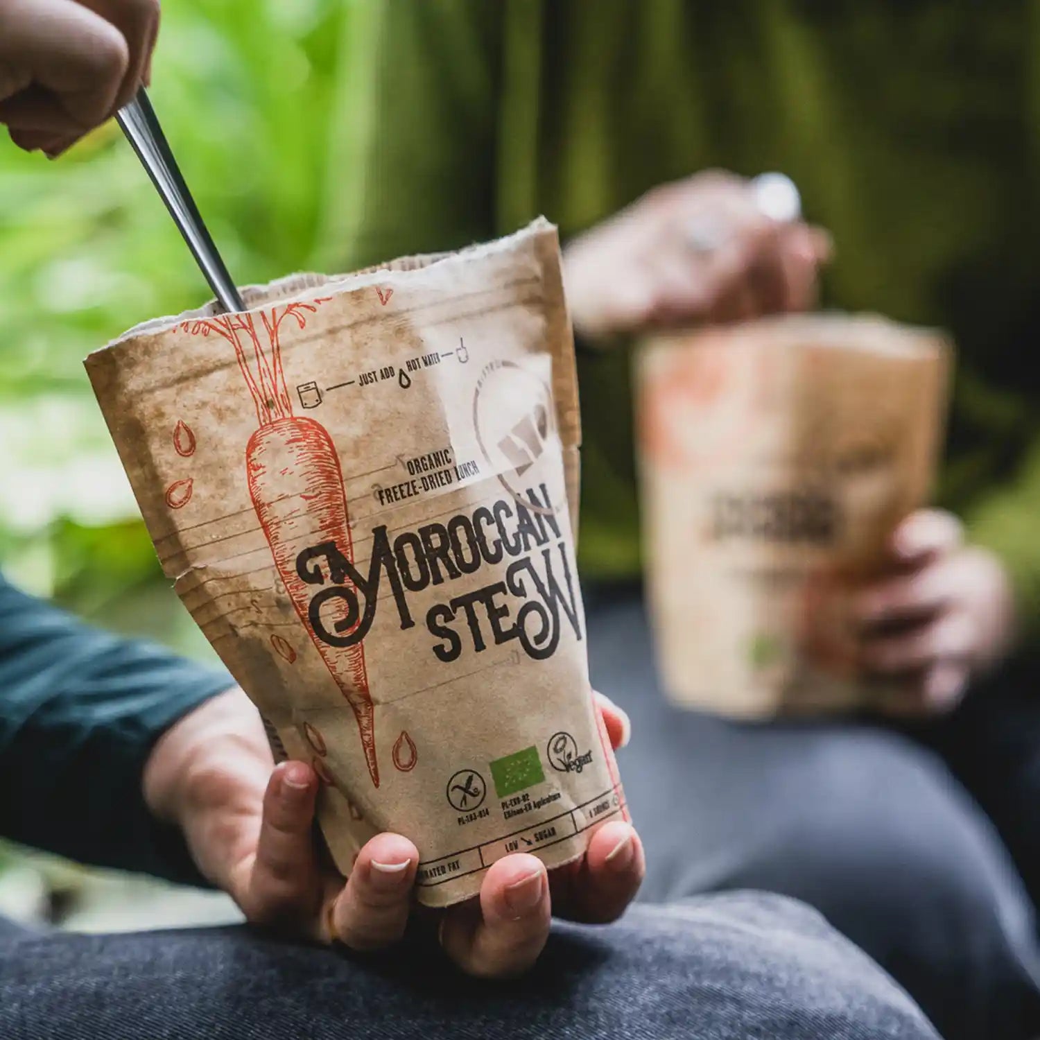 Comida liofilizada orgánica: Estofado Marokkan con polenta