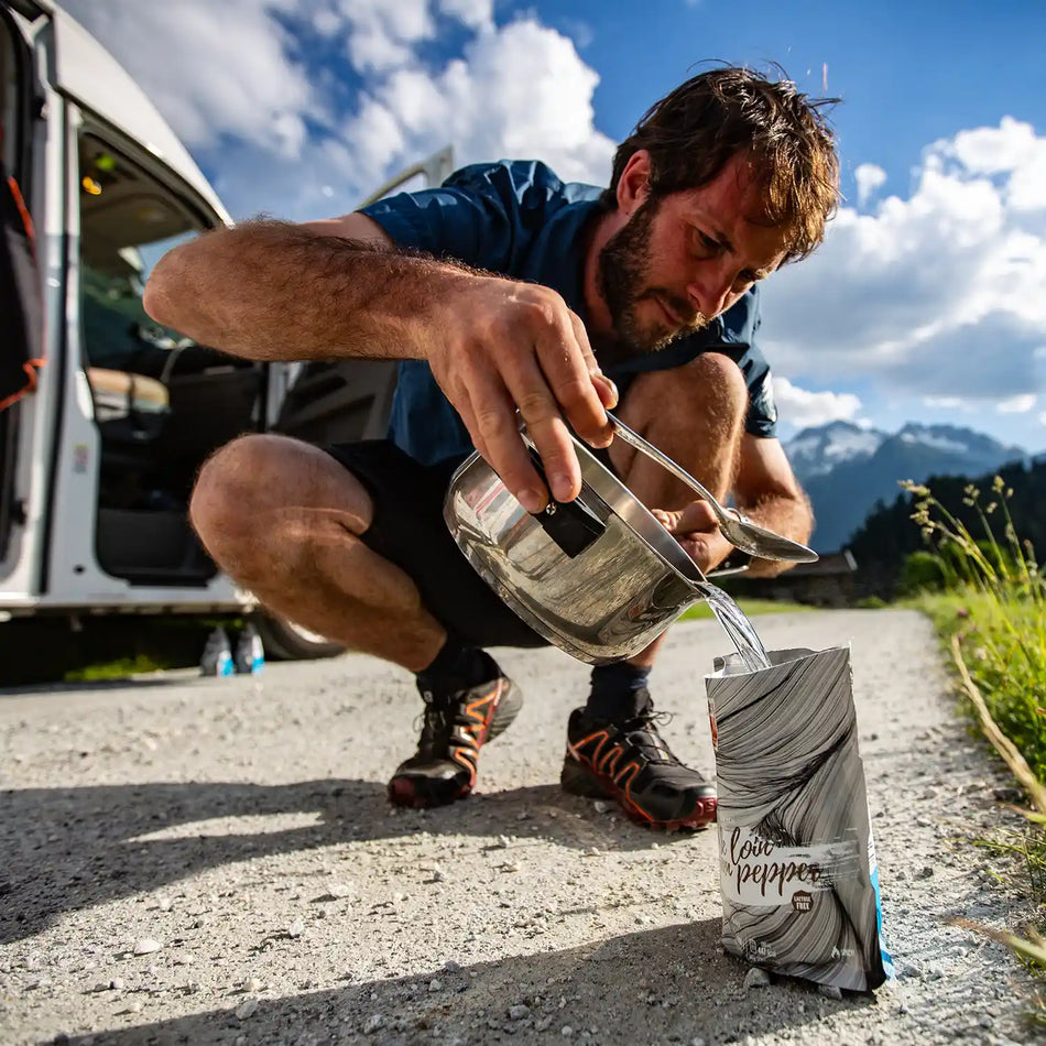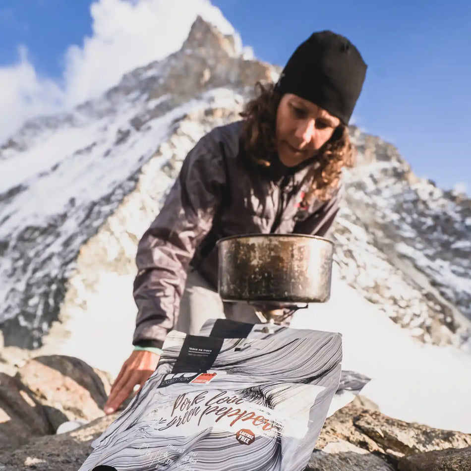 Comida liofilizada: Lomo de cerdo con judías verdes y patatas en salsa de pimienta verde