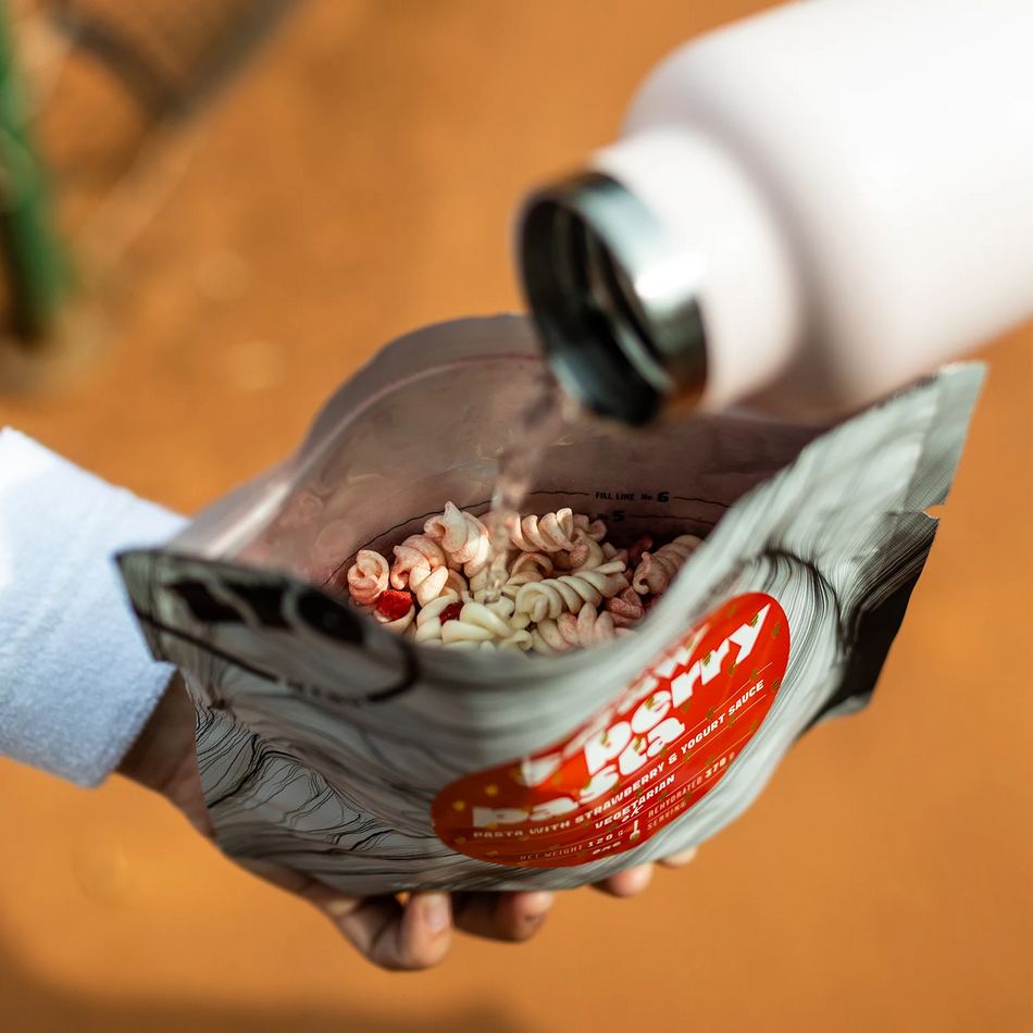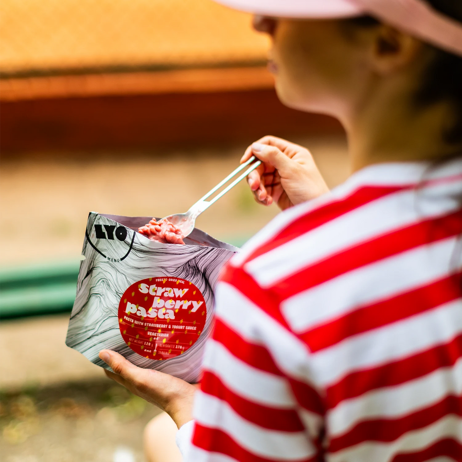 Freeze-dried meal: Pasta with strawberry & yogurt sauce
