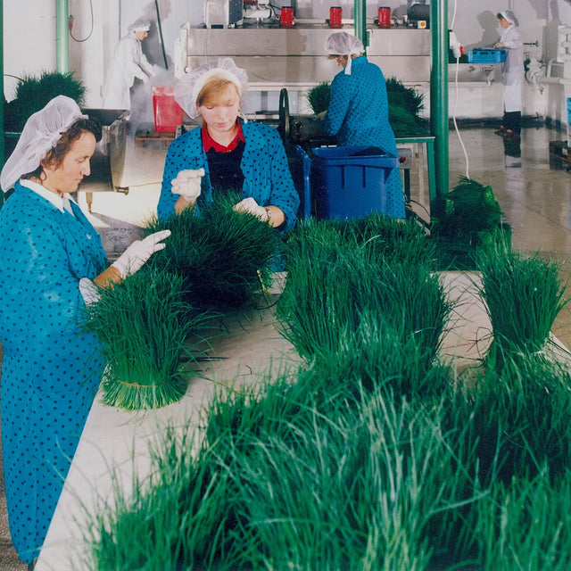 Das erste angebotene Produkt war gefriergetrockneter Schnittlauch, der von allen Familienmitgliedern geschnitten und nach den Niederlanden verschifft wurde.