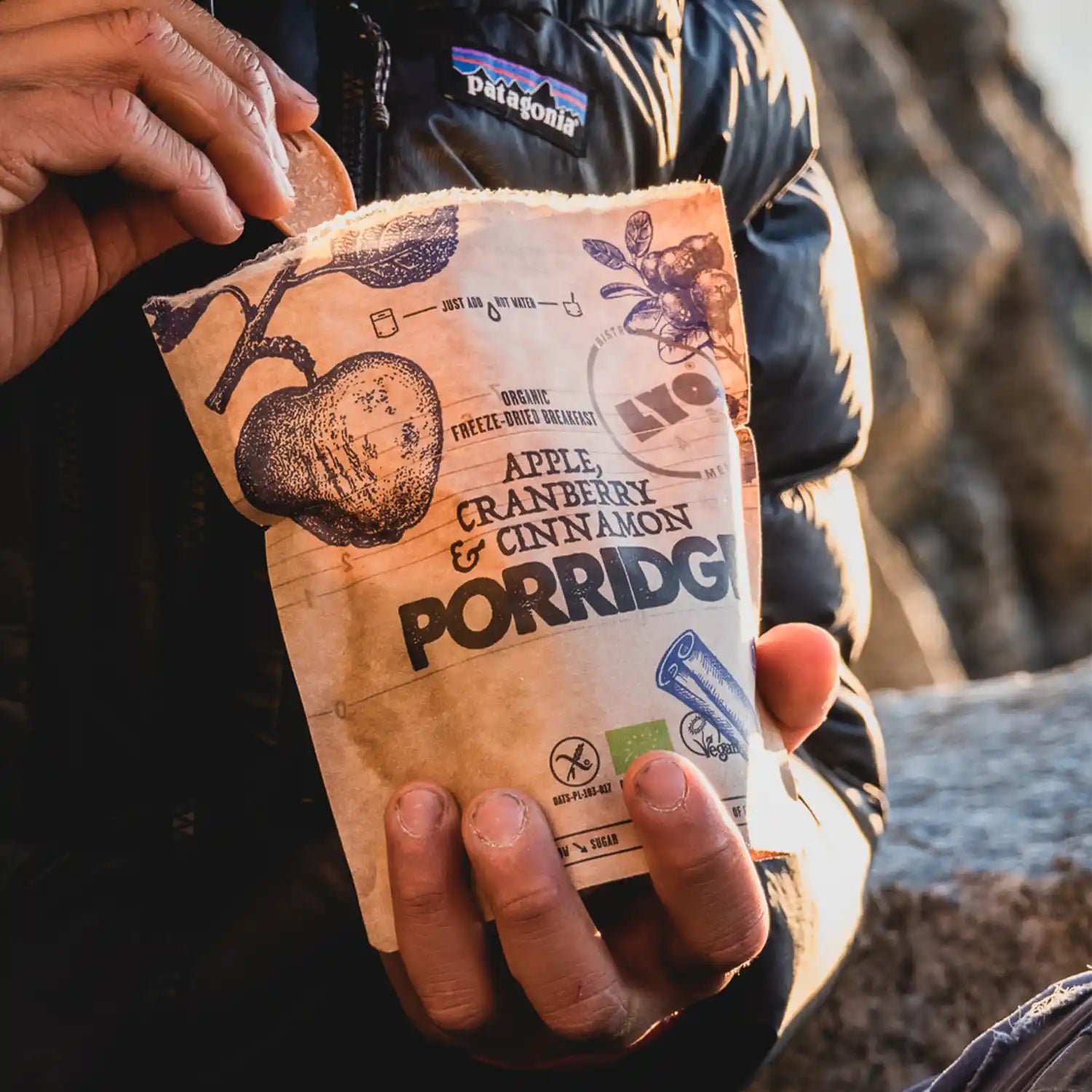 Petit déjeuner lyophilisé bio: Porridge bio avec pommes, canneberges, cannelle et graines de chia